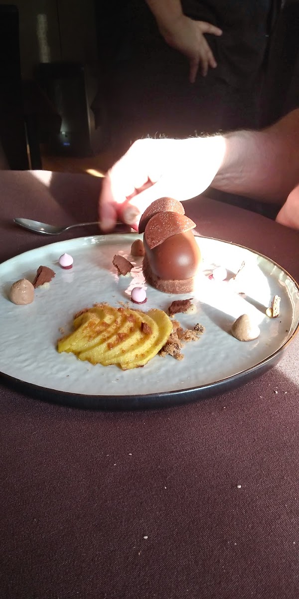 One of the restaurant's standout features is its delectable signature dessert, the Financier Cremeux de Cafe Et Mousse de Chocolat. This mouthwatering creation combines the rich flavors of coffee with a smooth chocolate mousse, making it the perfect way to end a meal on a sweet note. Whether you're a coffee enthusiast or a chocolate lover, this dessert is sure to satisfy your cravings and leave you wanting more.